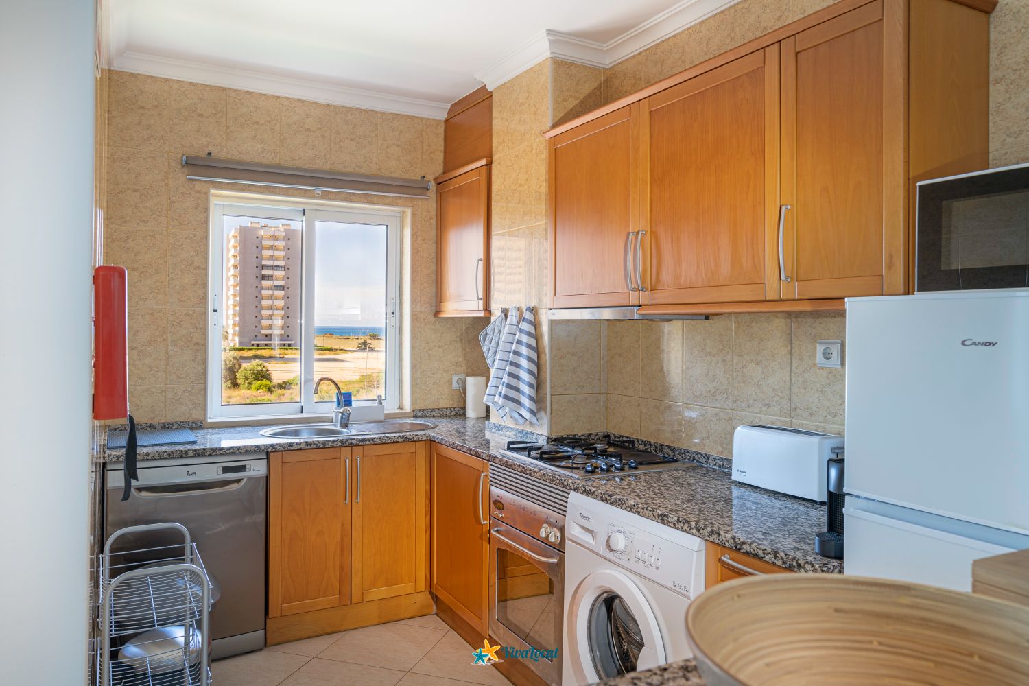 Com uma varanda com vista para a Vila de Alvor, este apartamento possui um quarto com cama de casal, uma sala de estar com um sofá cama, cofre, uma televisão de ecrã plano com canais por satélite, uma cozinha equipada com uma máquina de lavar louça e um micro-ondas, maquina de café expresso e de filtro, chaleira e torradeira, uma máquina de lavar roupa e uma casa de banho com banheira e secador de cabelo.