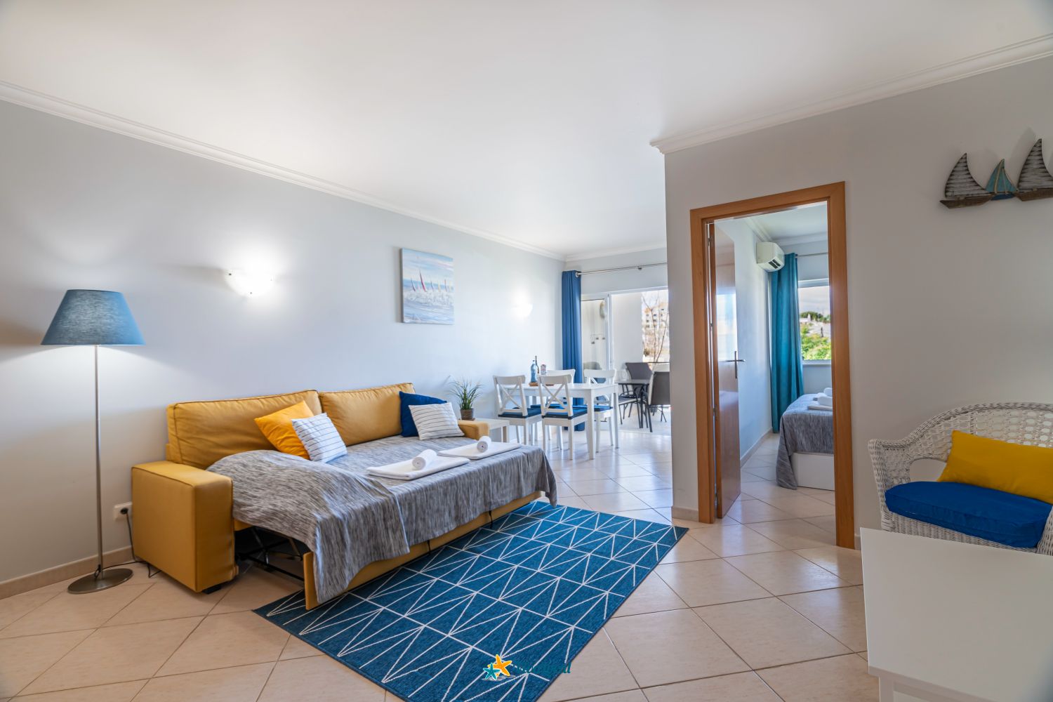 Com uma varanda com vista para o mar de Alvor, este apartamento possui um quarto com cama de casal, uma sala de estar com um sofá cama e sofa individual, cofre, uma televisão de ecrã plano com canais por satélite, uma cozinha equipada com uma máquina de lavar louça e um micro-ondas, maquina de café expresso e de filtro, chaleira e torradeira, uma máquina de lavar roupa e uma casa de banho com banheira e secador de cabelo.